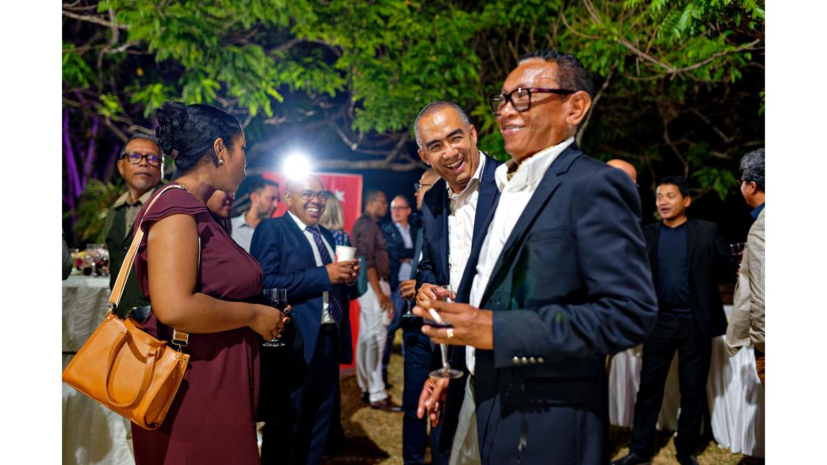 Accueillis par Son Excellence M. Arnaud Guillois, Ambassadeur de France à Madagascar, et par Mme Johanne Raharinosy, Présidente de la CCIFM, les invités ont découvert cette nouvelle cuvée dans une ambiance chaleureuse et festive. La soirée a débuté par des discours inspirants de l’Ambassadeur de France à Madagascar et de la Présidente de la CCIFM, qui ont souligné l’importance des liens professionnels et amicaux tissés au sein de la communauté franco-malgache.
