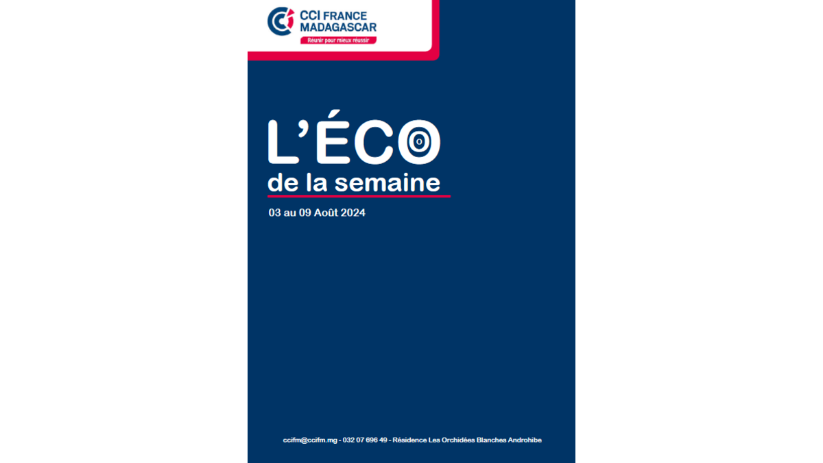Veille Eco de la semaine du 03 au 09 Août 2024 Le 18/10/2024 Un recueil hebdomadaire des Eco de la semaine à MadagascarLecture de l'Eco de la semaine du 03 au 09 Août 2024Documentation Télécharger ECO_DE_LA_SEMAINE__2024__S32.pdf (PDF • 588 Ko)