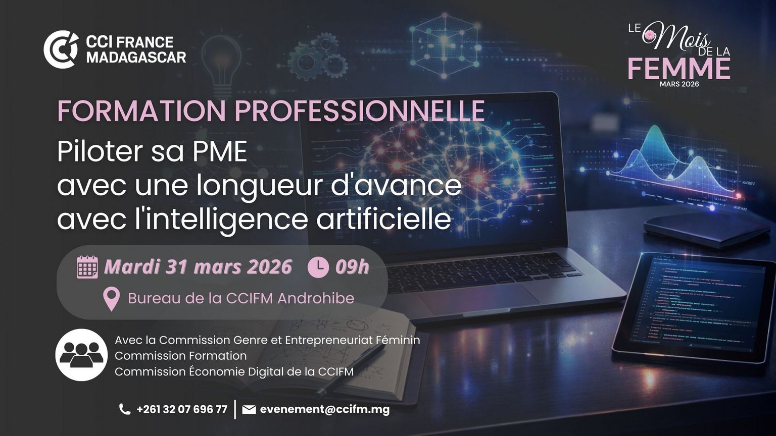 Avec la Commission Genre et Entrepreneuriat Féminin, la Commission Formation et la Commission Économie Digitale de la CCIFM