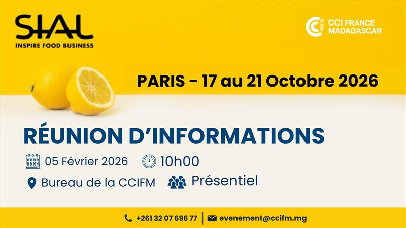 À cette occasion, la CCI France Madagascar conduira une délégation d’entreprises membres et organisera une réunion d’information afin de présenter l’événement et les modalités de participation.